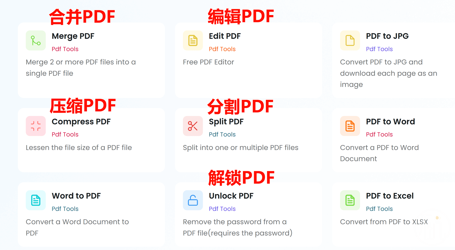 进来之后,好多关于PDF的工具,难懂的我给大家翻译了一下,其它的应该能明白是什么意思。