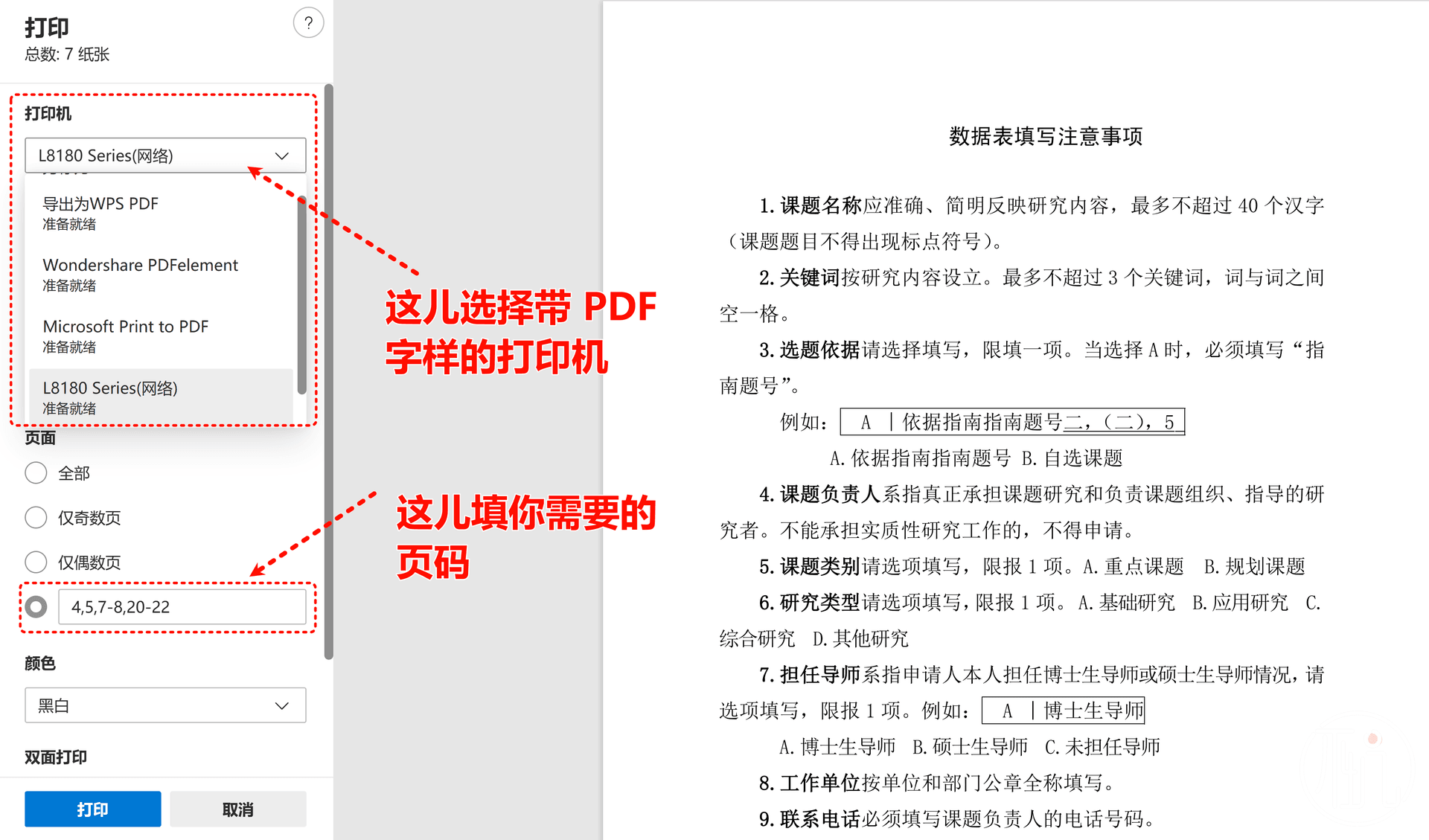 点击“打印”后,并不会在你真实的打印机中打印,而是会帮你保存为一个全新的.pdf文档,里面就只有你想要那几个页面。