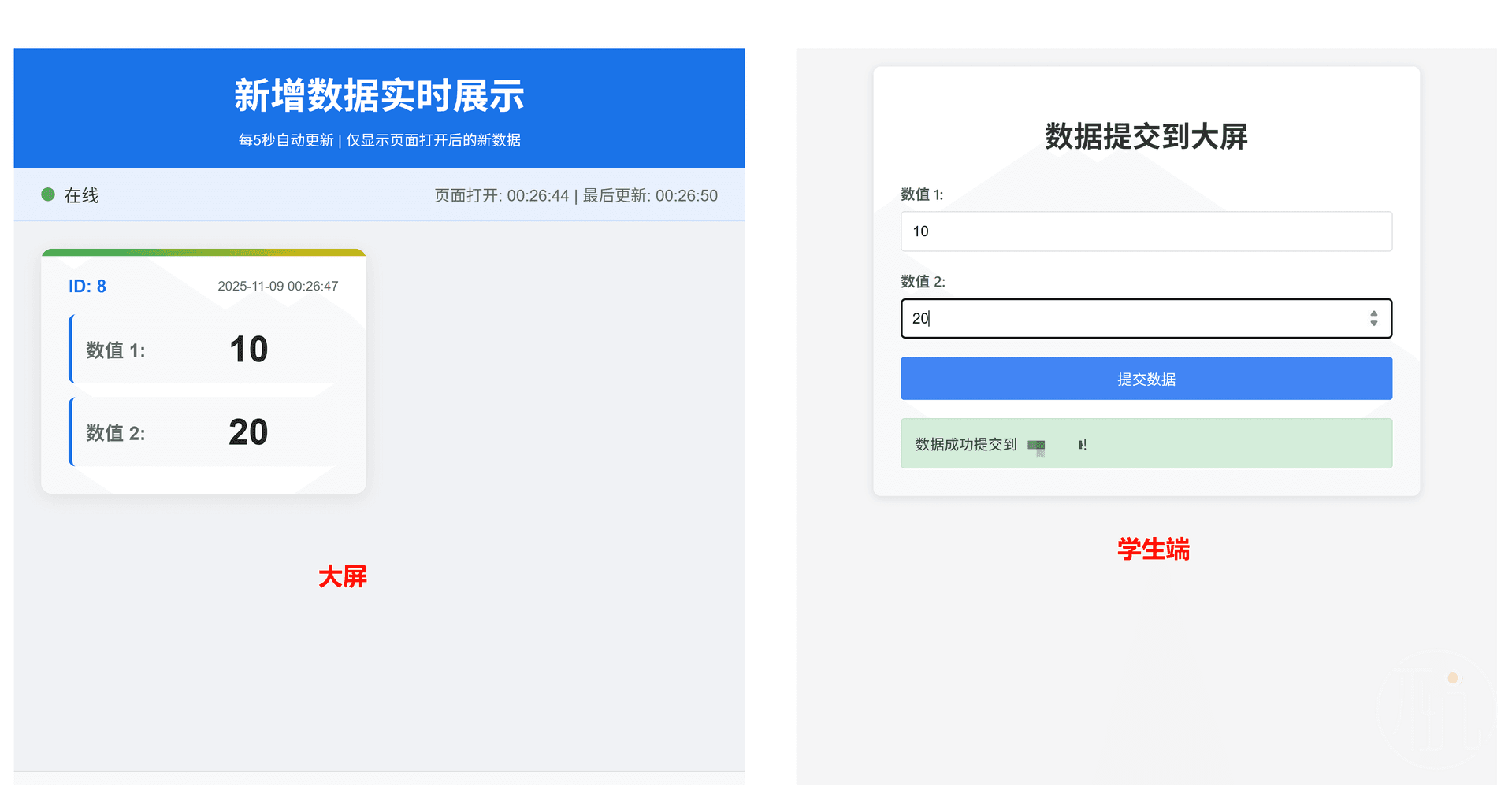 周六晚上,不坑老师给大家直播演示了《AI赋能课堂——学生端与教师大屏数据同步》。