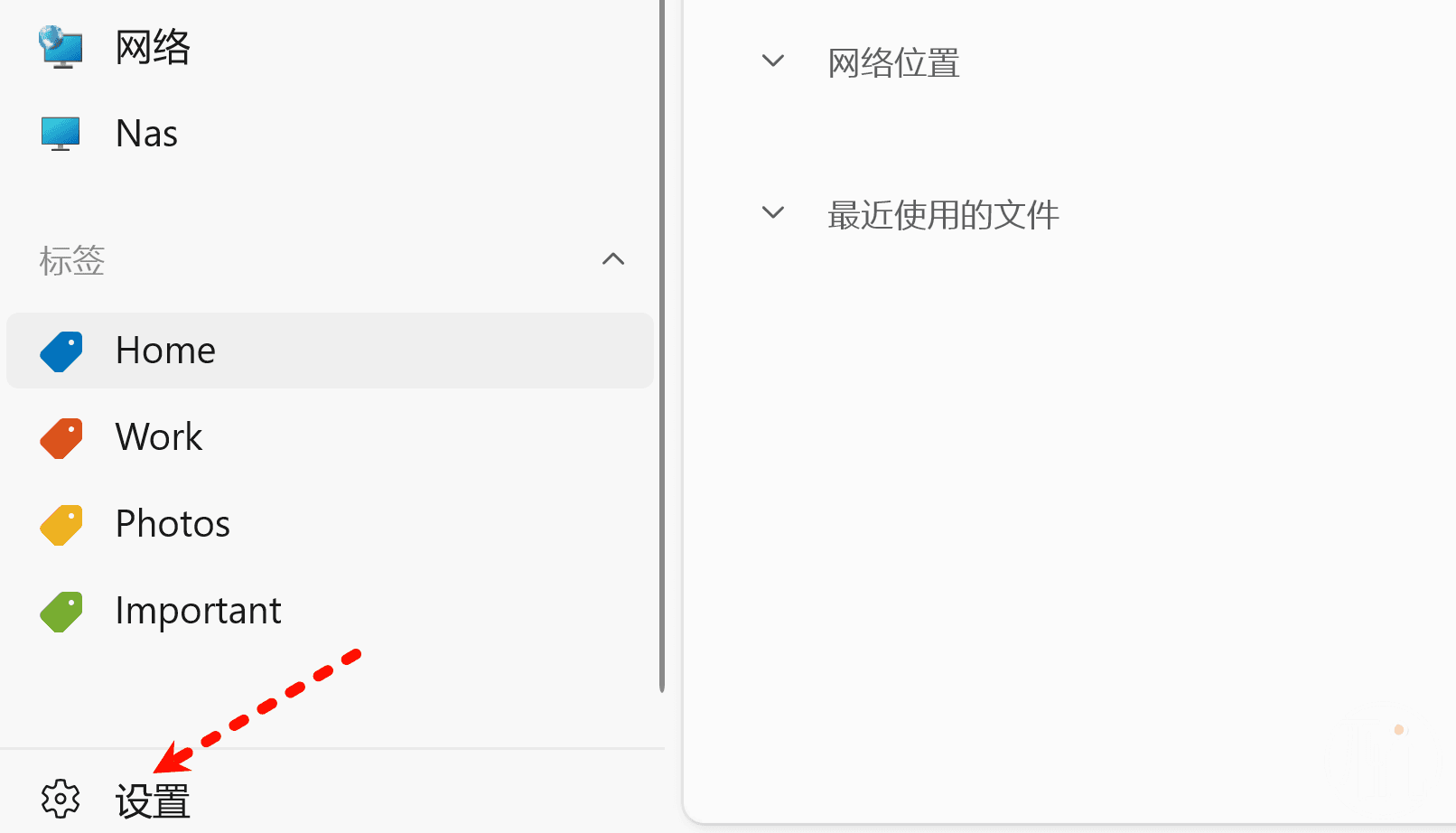 对了,“设置”的入口是在打开任意目录后,窗口的左下角的。我都是在任务栏右下角图标和窗口顶部找了好久,结果发现在窗口左下角的。