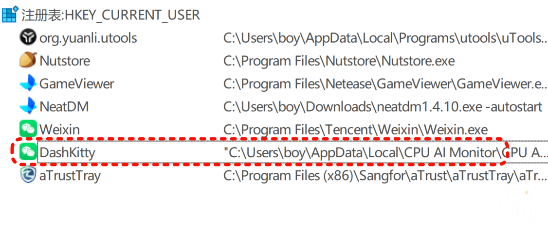 看看下面这个,图标是微信,但其实是“CPU AI Monitor”,立即禁止开机启动。😂