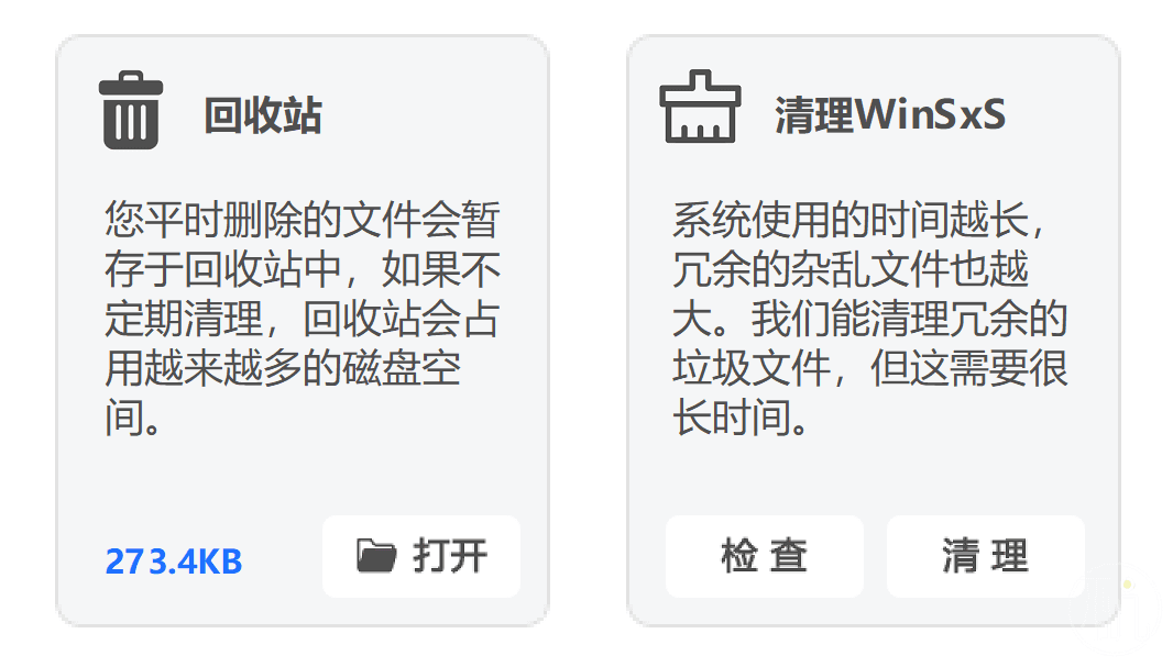 右下角的“清理WinSxS”可以清理试试看,用得久的电脑能清掉不少东西。